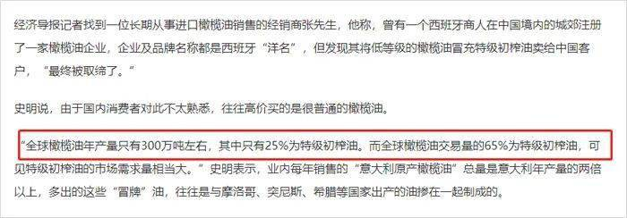 比如在德国,调查人员发现,德国市场上数百万瓶橄榄油都是假货!