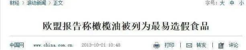 早在2013年,欧盟就将橄榄油列为十大最易造假食品之首。